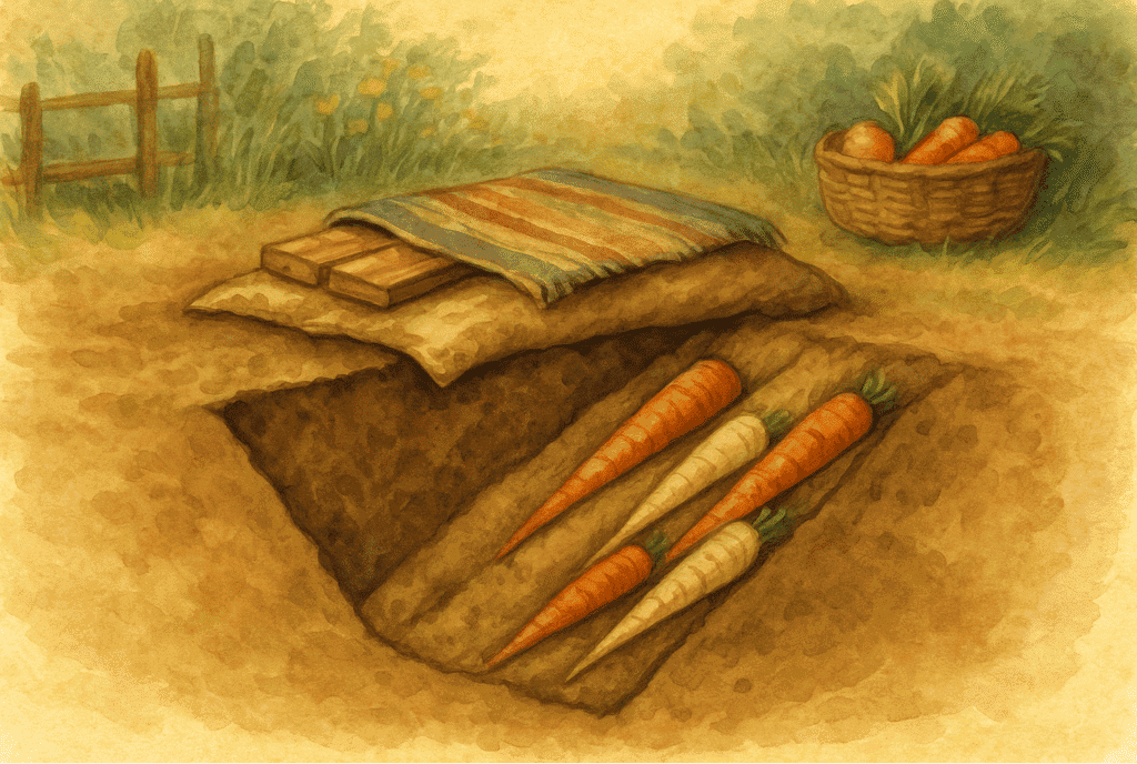 A vermet úgy készítettük, hogy a földbe ástunk egy kb. 30–35 cm mély üreget, melybe enyhén rézsútos rétegezéssel kerültek bele a sárgarépák és a petrezselyemgyökerek, homokrétegekkel elválasztva, amit felülről is letakartunk egy réteg homokkal, régi szőnyeggel, zsákokkal, majd deszkákkal. Mindig csak 1-2 hétre való adagot vettünk elő belőle: a föld illata és a frissen kibontott répa roppanása minden fáradságot megért.
